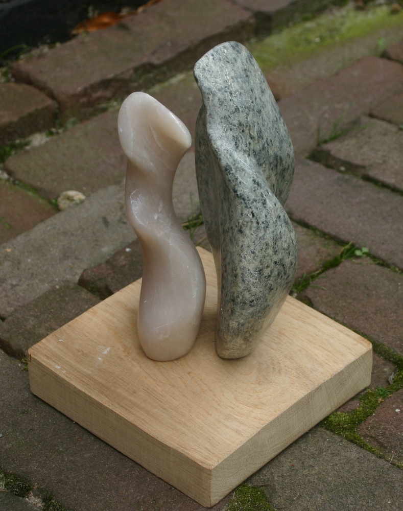 Speksteen op eiken sokkel