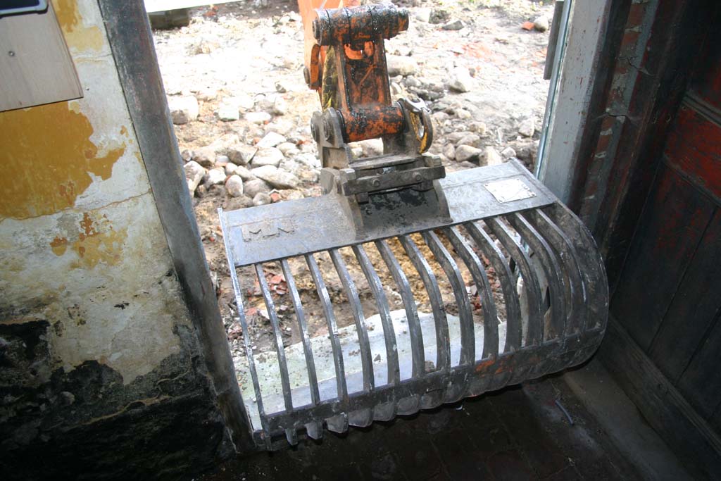De grijper van de minikraan paste precies door de deur waardoor de drempel eenvoudig verwijderd kon worden.