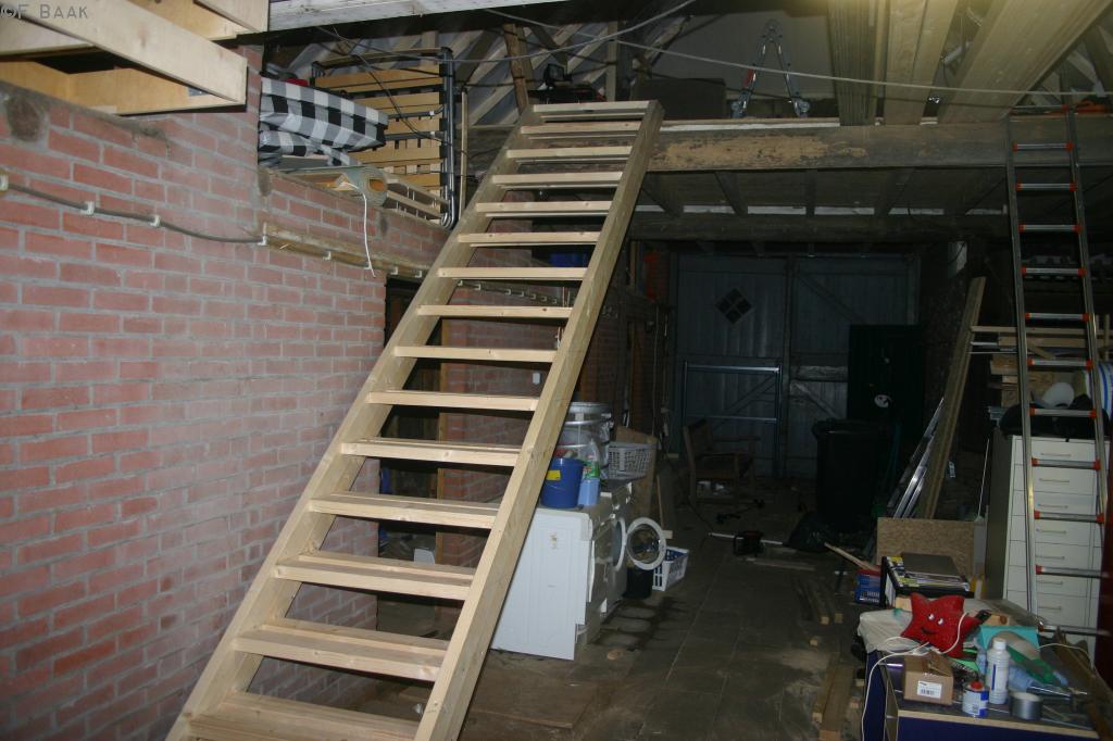 Kijk daar staat de trap. Toch met enige handigheid omhoog gekregen.