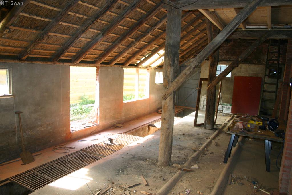 Uitsparingen voor de ramen zijn gemaakt. De onderzijde van het raam links is precies op maaiveldniveau. Dit zal ook het nieuwe vloerniveau worden.