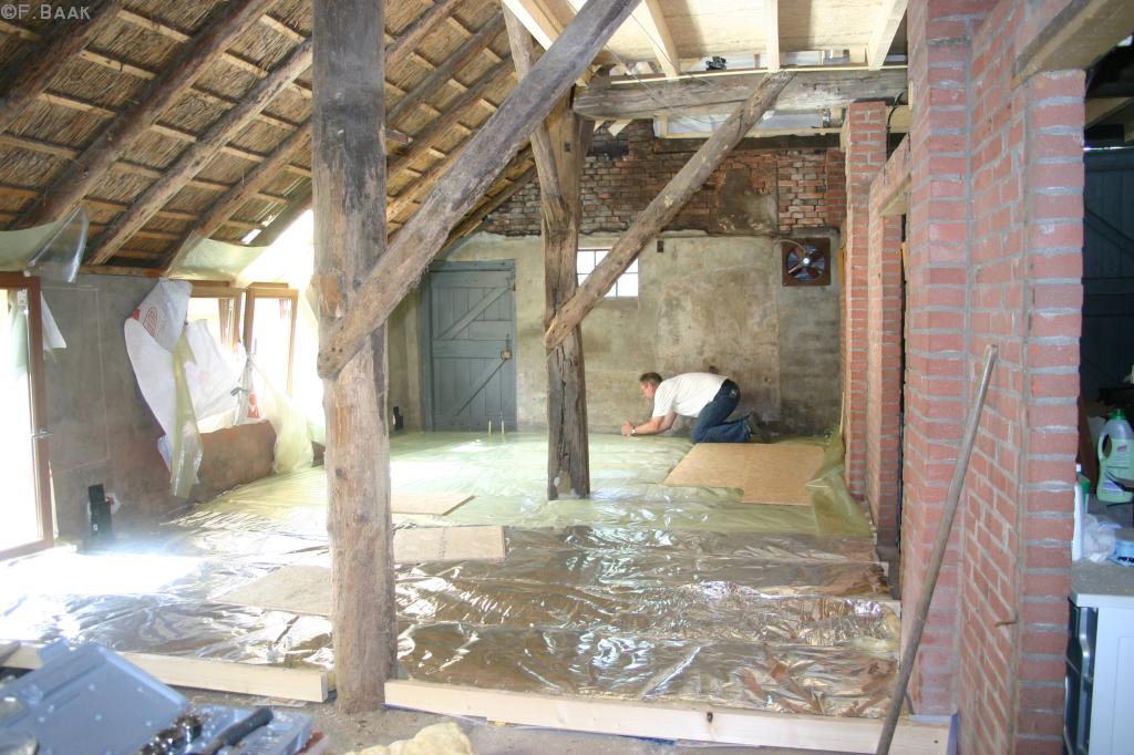 Isolatie zit erin, dampdichte laag erover en vloerplaten leggen.